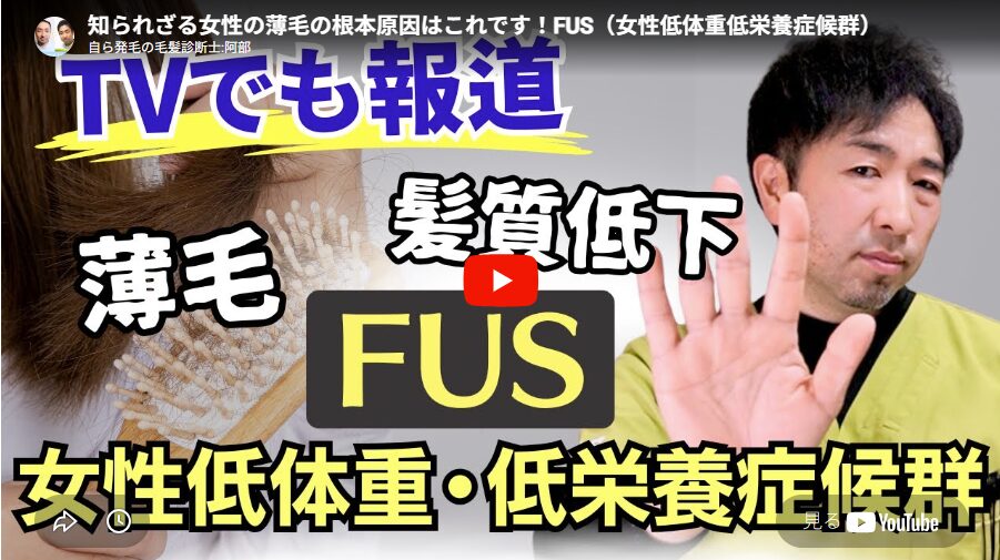 今回は、女性の新たな症候群のFUS(女性低体重低栄養症候群)と女性の薄毛の関係性について解説します。